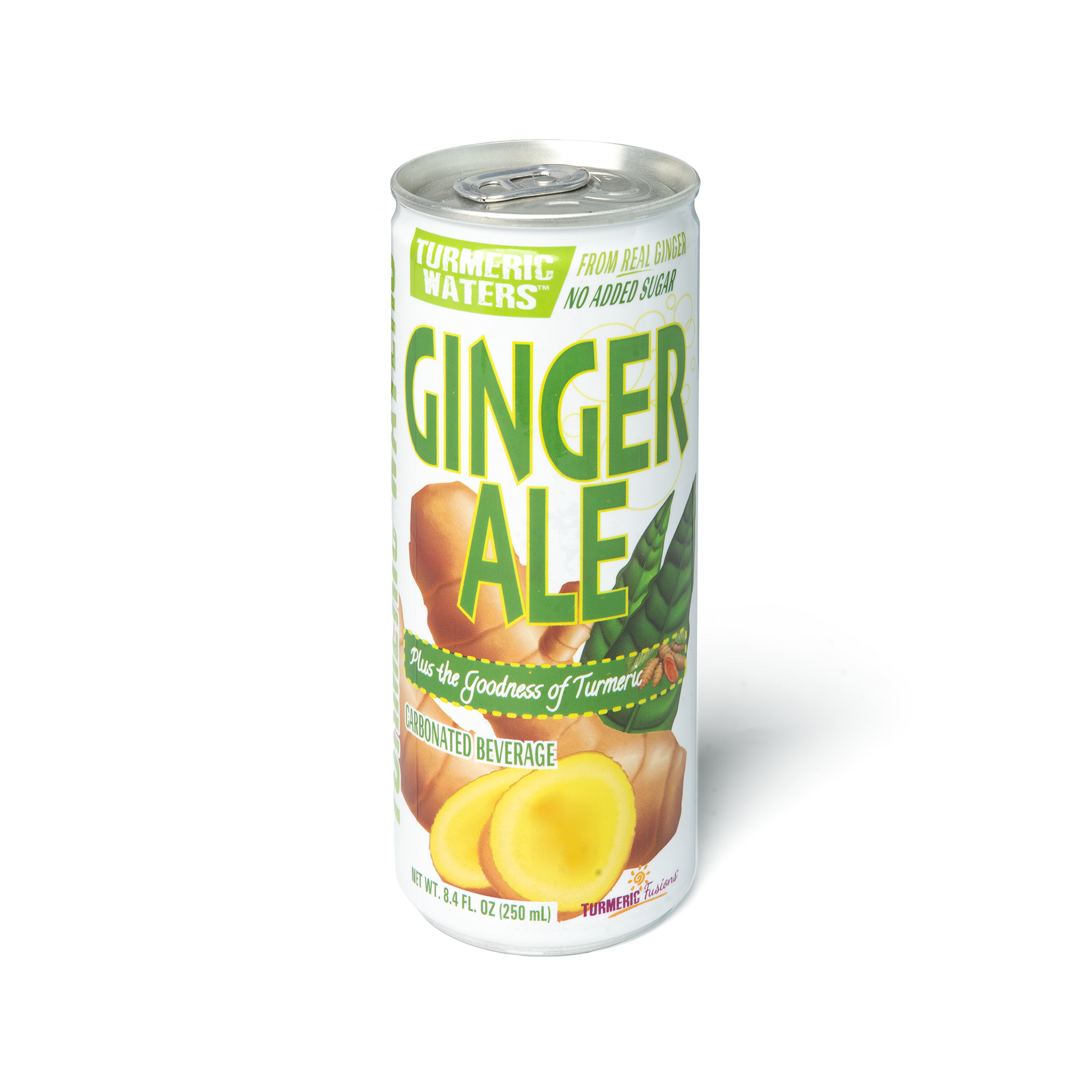 TURMERIC WATERS Carbonated Beverage Ginger Ale + BioPhenol99 Turmeric Extract Single 8.4 FL OZ (250 mL) Can