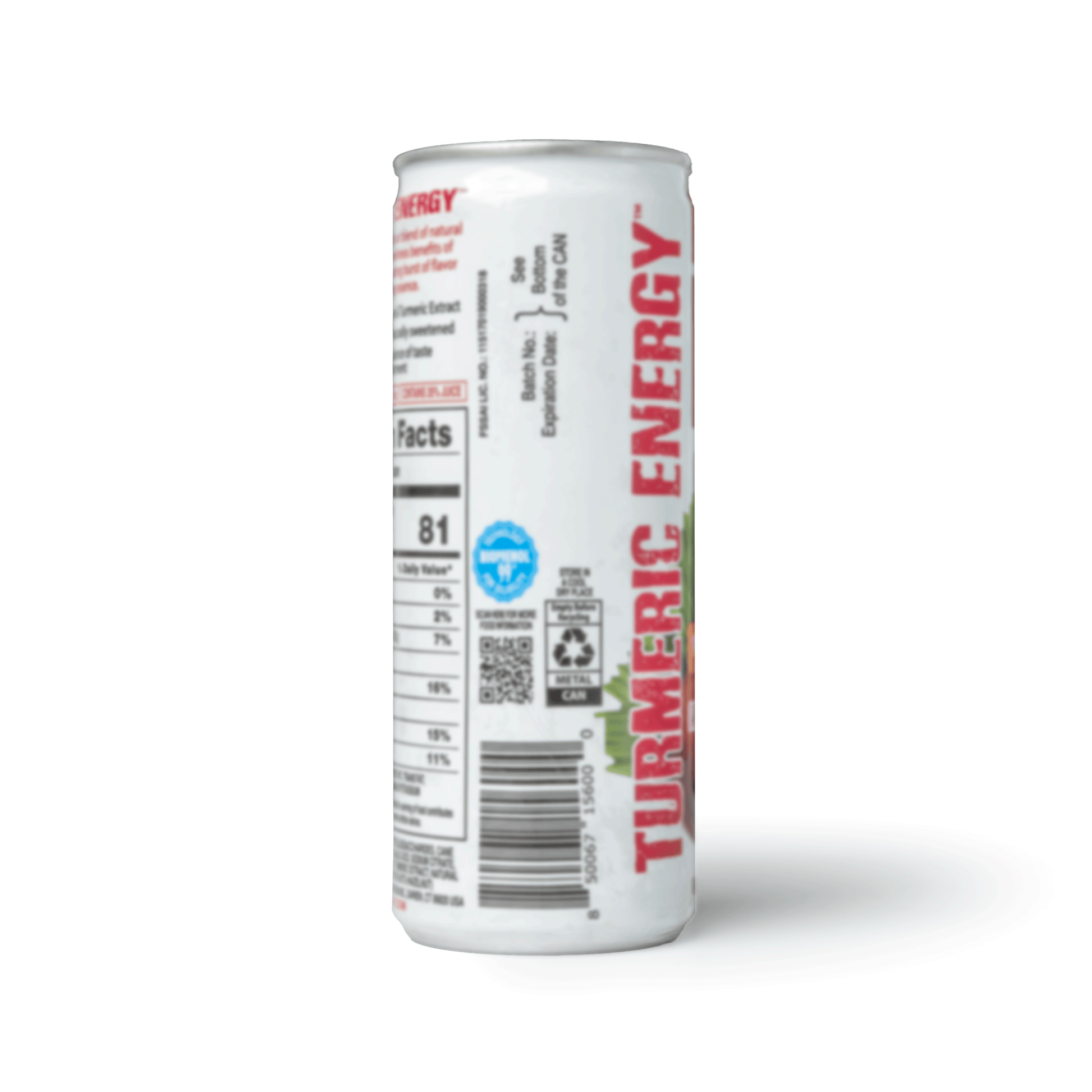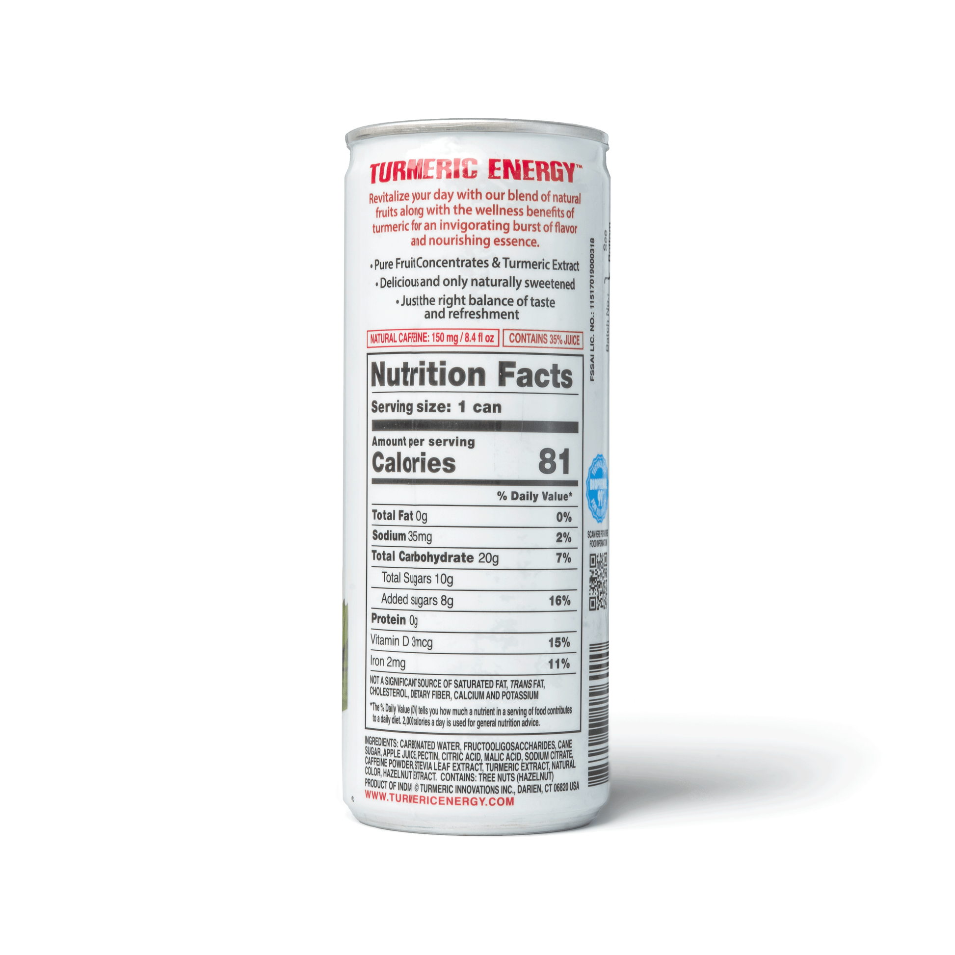 TURMERIC ENERGY Carbonated Caffeinated Beverage Hazelnut + BioPhenol99 Turmeric Extract Single 8.4 FL OZ (250 mL) Can