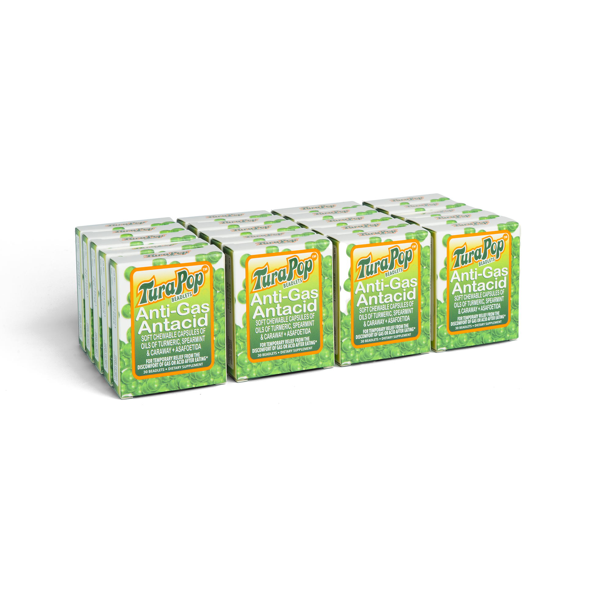 TuraPop Beadlets Anti-Gas & Antacid with Turmeric Oil Sealed Box for Dispenser 30 Beadlets